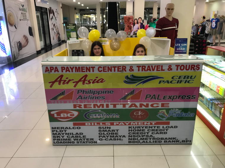 セントロモールにおいて公共料金収納、航空券販売、旅行商品販売をやっています